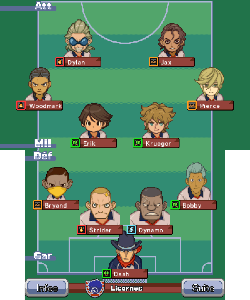 | Phases Finales | Brocken Bogue • Inazuma Japon • Knights of Queen • Les Empereurs • Licornes • Little Gigantes • Orphée • Rois du Football • Rose Griffon • Toreros Rouges |