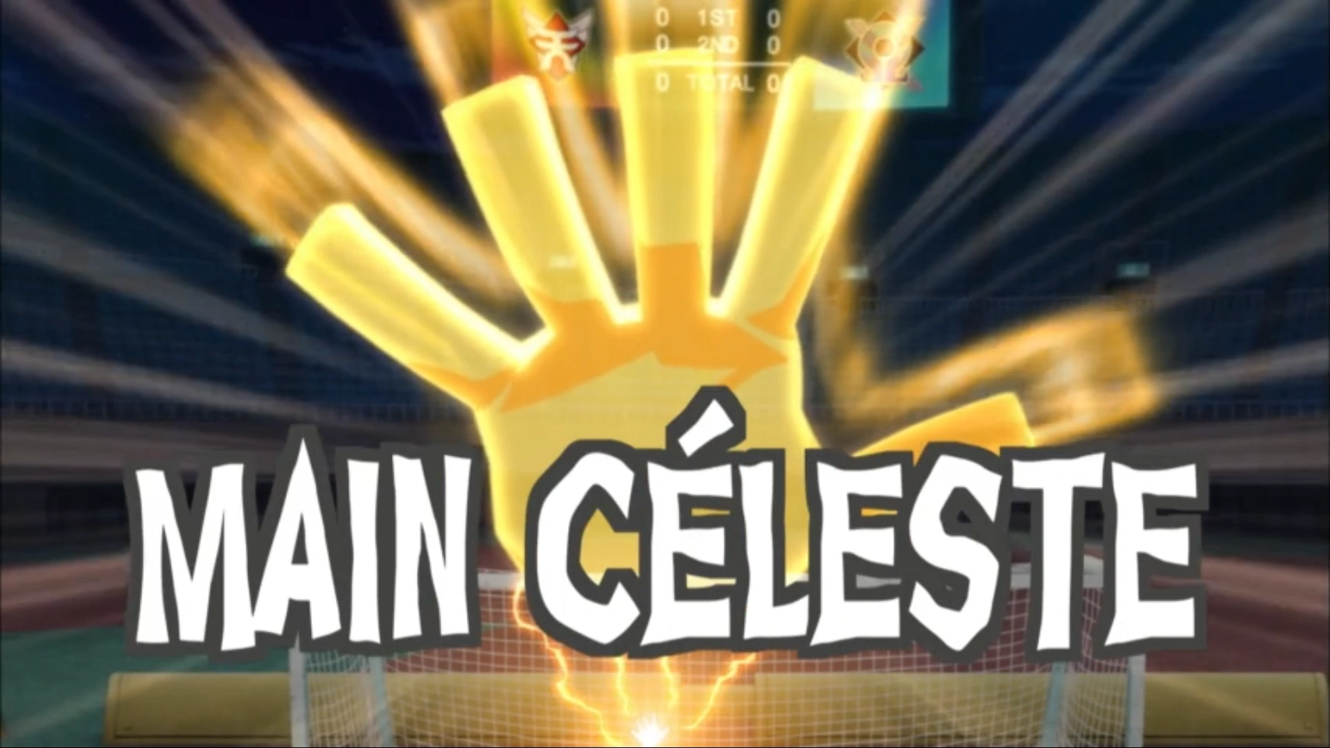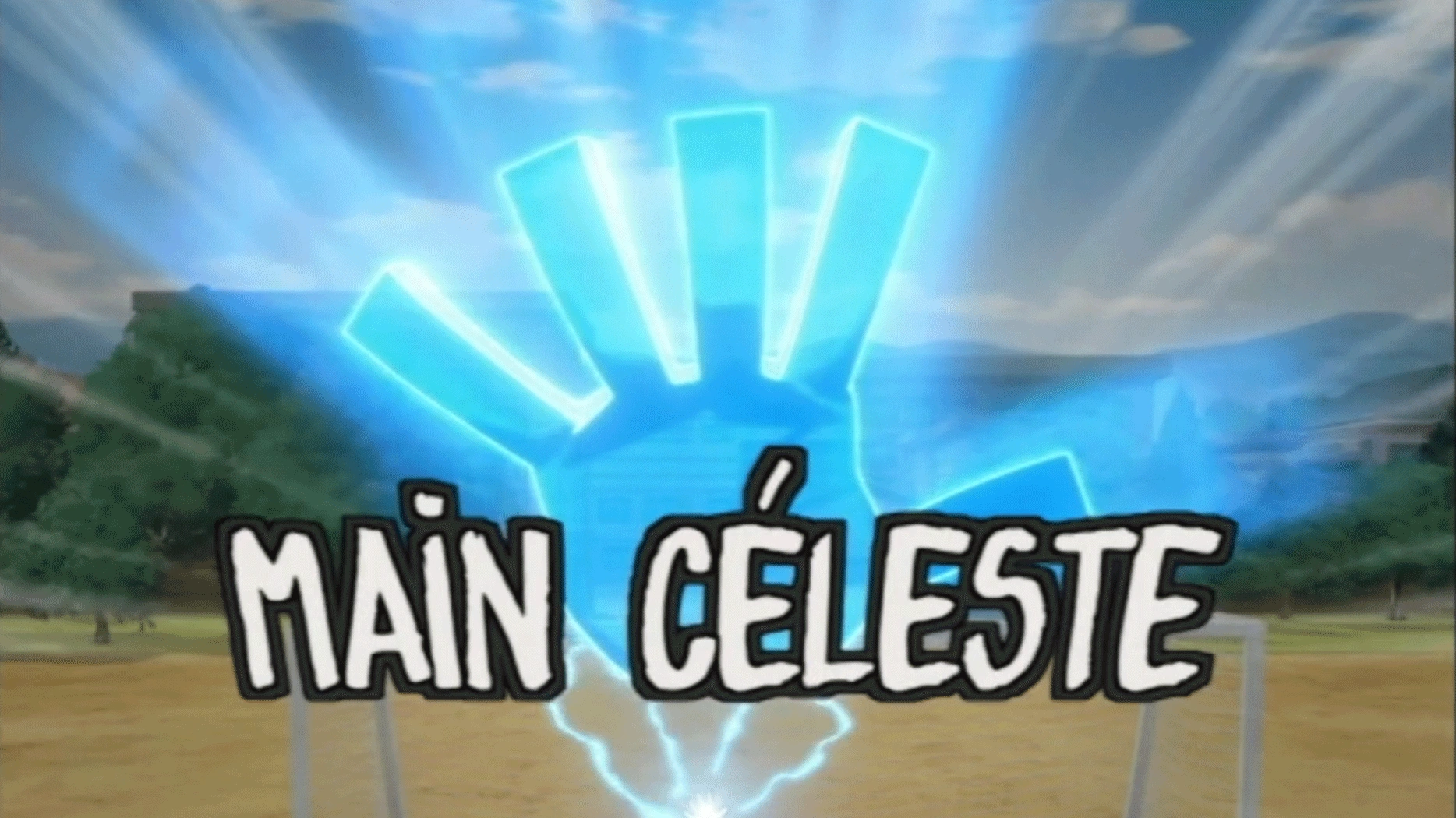 C'est la toute première Supertechnique de Mark Evans, utilisée lors du match amical contre la Royal Academy, exécutée pour le première fois lors de l'épisode 2. C'est au moment où Derek Swing, David Samford et Daniel Hatch utilise le Triangle de la Mort qu'on voit la Main Céleste. Elle est créée par David Evans, le grand-père de Mark. On dit qu'elle peut arrêter un camion.