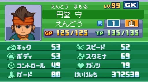 Chỉ số cơ bản của Endou lúc lên cấp độ 99 trong Inazuma game phần 2.