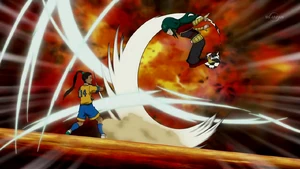 In the second and last match between Zanark Domain and Raimon[1], Meizu used it, successfully getting past Nishiki. Meizu used it again[2], successfully getting past Fei.