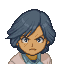 His hairstyle is a bit like Ichinose and his hair is dark blue. He has a holy cross scar on his right cheek and has black eyes and tanned skin.