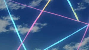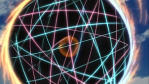 The users run together, crossing over so that one user runs behind the other. The front one jumps in the air, while the back one shoots the ball in the air like using Ryuusei Blade. The user that jumped crosses their arms and starts to glow golden, like with Zigzag Strike. The user then kicks the ball to the other user, who kicks the ball back again. This continues until a big black hole appears. The two users then come soaring down, kicking the hole, creating a big blast that aims for the goal.