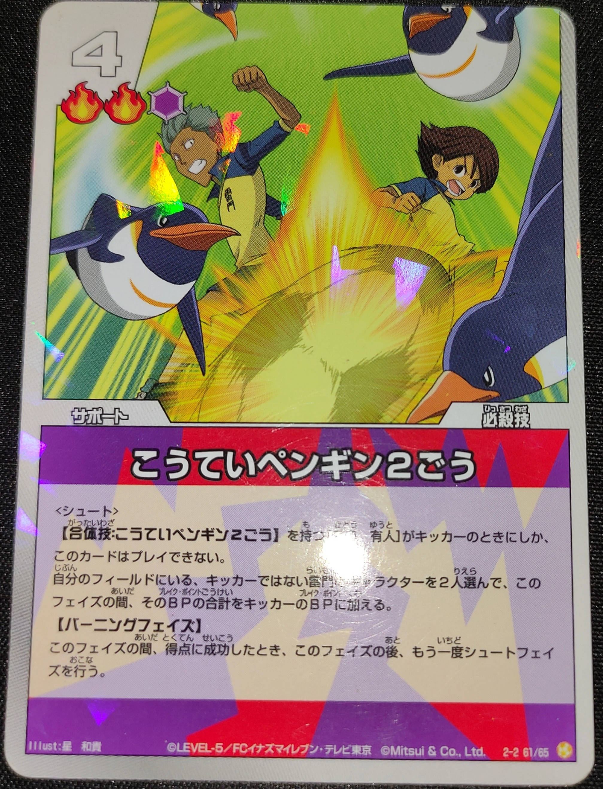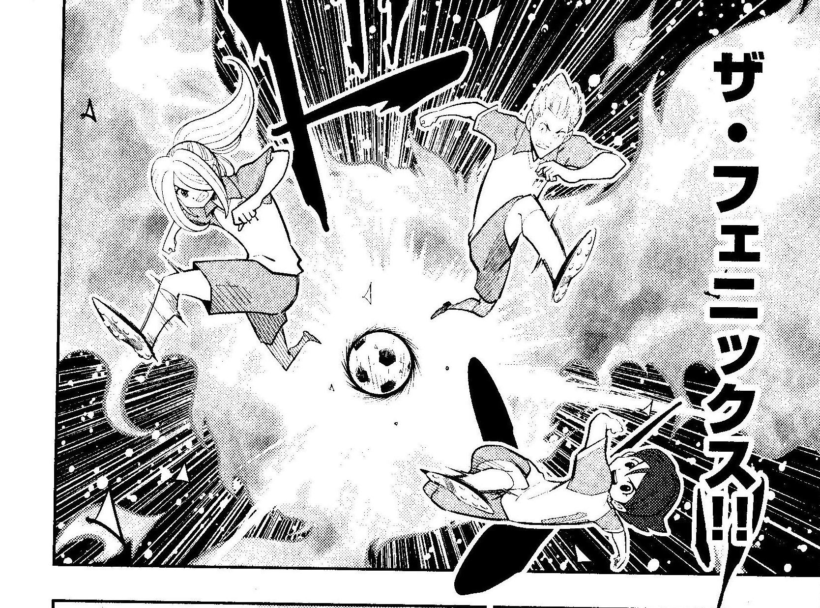 Later, he and Aki discovered that Ichinose was still alive and waited for him at the airport, only to find out he was not there. After they returned to school, they discovered Ichinose has already caught the others' attention. Domon, Ichinose and Endou decided to remaster the Tri-Pegasus, but they couldn't figure out why it didn't work. Later, Aki remembered that when they did the technique for the first time when they were children, she stayed at the point where they should cross. With help from Aki, Endou, Domon and Ichinose finally managed to complete the Tri-Pegasus and they shared a group hug. The next episode, they found out another childhood friend of theirs, Nishigaki Mamoru, had transferred to Kidokawa Seishuu that year. They had a chat together and sweared that they wouldn't lose against each other in their following match. During the match, Domon, Endou and Ichinose used their newly mastered hissatsu to score, but it was later stopped by Nishigaki's Spinning Cut. After they succeeded breaking through Spinning Cut, the Tri-Pegasus evolved to The Phoenix to score the winning goal. They used the same hissatsu in a chain shoot with Gouenji's Fire Tornado during the match against Zeus to score the goal that won the Football Frontier.
