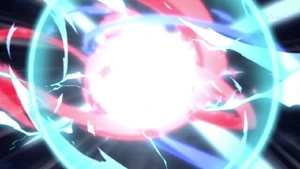 In the match between Protocol Omega 2.0 and Raimon[2], Beta used it while Keshin Armed with her Keshin, Athena, quickly breaking through Machos' defense and successfully scoring Protocol Omega 2.0's second goal. Beta used it again while Keshin Armed[3], quickly breaking through Shinsuke's bodily defense and getting past Machos, successfully scoring Protocol Omega 2.0's third goal.