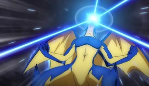 In the match between A Team and B Team[6], Someoka used Dragon Slayer V3 twice to try to score, but both attempts were stopped by Tachimukai's Maou The Hand G5 and deflected by Touko, Tsunami, and Kogure's 真 Perfect Tower, respectively.