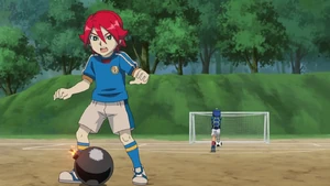 In the duel between the Kamezaki siblings and both Hiroto and Kogure[1], Kappa used it, successfully stealing the ball from Hiroto. Kokappa used it twice, successfully stealing the ball from Hiroto both times. Kappa used it twice again, successfully stealing the ball from Hiroto both times. Kokappa tried using it again, but Hiroto managed to quickly get past them.