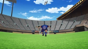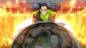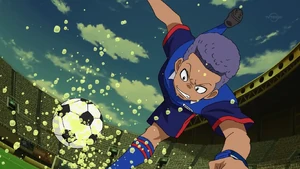 Goujin used this technique again during the match against Muteki no Giant. However, the goalie, Alonso Fibiano, saved the shot easily with his powerful technique, The Boyon. Later, Goujin faked using this shot, and Atsuya came in from the back to score the equalizing goal for Inazuma Japan with his Hissatsu Kumagoroshi Zan.