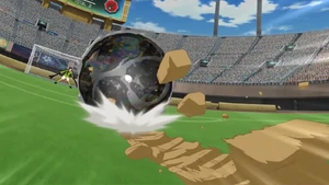 The user kicks the ball upwards and leaps upwards as clouds of fizz spiral around the user and the ground below cracks into dirt. The clouds become waves of green fizzy soda that propel the ball, surrounded by a yellow aura, upwards even more. In a huge wave of green soda, the user kicks and shoots. The ball, surrounded by glowing yellow bubbles, rushes toward the goal with green fizz spiraling it. Eventually, the yellow ball becomes a massive gray bubble that skids across the field and into the goal. The user can also add "Rising", which causes the bubble to forcefully shoot upwards, sometimes even displacing the goal.