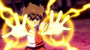 In the match between Shinsei Inazuma Japan and Destructchers [ 1] , following Fran 's raid, Tenma created it and used it, with all members of Shinsei Inazuma Japan, Asta , the LBXs of all members of NICS , and Sun 's Digitonias I and Digitonias II aiding him, successfully catching Fran 's Chaos Meteor while both Mixi Maxed with Kuroi Bara and Keshin Armed with her Keshin , Chaos .