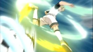 In the match between Storm Wolf and Inazuma Japan[1], Maksim used it, quickly breaking through Ibuki's Wild Dunk and successfully scoring Storm Wolf's first goal. Maksim used it again[2], quickly breaking through Ibuki's Wild Dunk once more and successfully scoring Storm Wolf's second goal. Maksim used it once more to try to score, breaking through Ibuki's Wild Dunk, but it was deflected onto the field in the process. Maksim used it one last time to ty to score, but it was deflected by Ibuki's Rising Slash. Dmitri used it[3], quickly getting past Ibuki's defense and successfully scoring Storm Wolf's fourth goal.