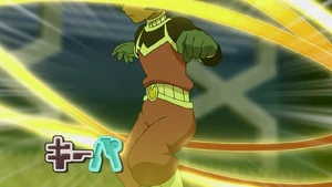 JP:T.B.A. (コマのように回転してジャイロ効果を生み衝撃を受けても安定したキャッチが可能。) EN:Spin like a top on the spot to create a gyroscopic effect that blunts the impact of incoming shots, making them easier to catch.
