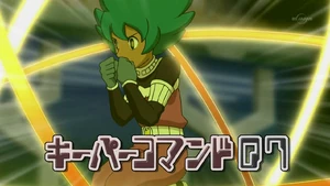 Gyro Saving (ジャイロセービング, Jairo Sēbingu), also known as Keeper Command 07 (キーパーコマンド07, Kīpā Komando Zero Sebun), is a catch hissatsu technique introduced in Inazuma Eleven GO Chrono Stone.