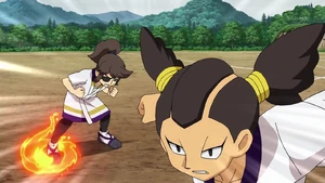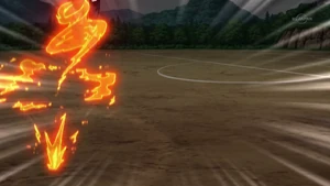 In the match between Shiroshika Gumi and Raimon[1], Kutou and Maebayashi used it, quickly getting past Shinsuke and successfully scoring Shiroshika Gumi's first goal. Kutou and Maebayashi used it again, quickly breaking through Shinsuke's defense and successfully scoring Shiroshika Gumi's second goal. Kutou and Maebayashi used it once more to try to score, but it was stopped by Shinsuke's defense while Keshin Armed with his Keshin, Titanias.