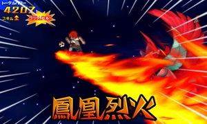 Houou Rekka (鳳凰烈火, Hōō Rekka, lit. Fenghuang Conflagration), also known as Shoot Command K01 (シュートコマンドK01, Shūto Komando Kē Zero Wan), is a game exclusive Keshin shoot hissatsu technique introduced in Inazuma Eleven GO 2: Chrono Stone.