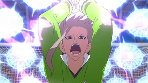 It is the first hissatsu technique in the anime to have fully-Latin script typography.