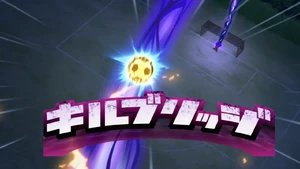 JP:T.B.A. (両手を高くかざしオーラを放出!ボールの軌道をオーラで手繰りよせる。) EN:Create a powerful aura beam and reel the ball in towards you!