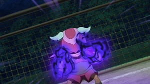 JP:T.B.A. (放出した闇の波動で ブリッジを作り出しボールのパワーを相殺してキャッチする。) EN:Build a bridge using dark shockwaves to cancel out the power of incoming shots and catch the ball.
