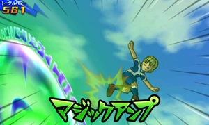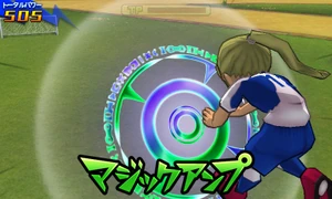 The user springs and spins into the air, coming to a sudden halt and reeling both of their arms to their back, abruptly thrusting them downwards and creating a double-ringed magic circle of green energy, with ancient runes carved onto it. They then kick the ball above them with their right foot and slowly spin themselves around, getting into position and reeling back their right leg. Once they volley the ball into the middle of the magic circle with their right foot, it begins to shine brightly, forming a floral-shaped layer around it and abruptly bursting on itself as it heads towards the goal in a concentrated beam of green energy, leaving a dark green cloud around the circle.