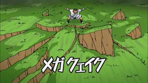 The user quickly springs into the air, getting into position to land again on the field. They then abruptly fall onto the field, making it shake and crack like an earthquake. Once the cracks head towards their opponent covered with soil, an earth crust emerges below them and blows them away as the ball bounces back towards them.