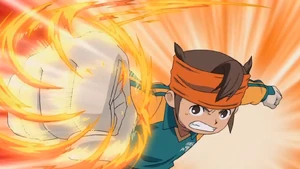 Amidst the destruction of Cotoarl's camp[11], Endou used it, successfully punching away the wood trunk Rococo was holding.