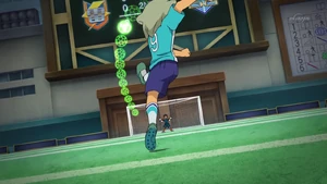 In the practice match between Eito Gakuen and Raimon[3], Yukiji used it, breaking through Sangoku's defense and successfully scoring Eito Gakuen's third goal.