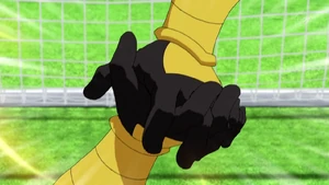 In the second and last match between Zanark Domain and Raimon[3], Shuten used it, successfully deflecting[note 1]Tsurugi's Devil Burst. Shuten used it again[4], successfully deflecting[note 2]Fei's Kodai no Kiba while Mixi Maxed with Tyranno. Shuten used it once more, barely deflecting Fei's Kodai no Kiba while Mixi Maxed with Tyranno.