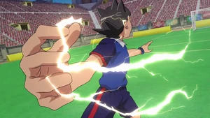 Asuto used his new technique during the match between Inazuma Japan and Guardians of Queen. However, he failed to score a goal because Gabriella Amati was able to stop his technique with Shinjitsu no Ooguchi which was increased in power thanks to her supporters.