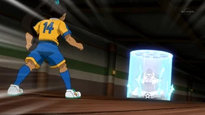 In the match between Karakuri Bingmayong and Raimon[1], one of the members of Karakuri Bingmayong used it, successfully getting past Nishiki.