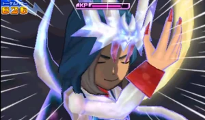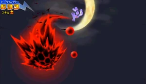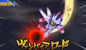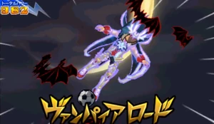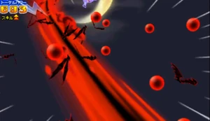 JP:Control a myriad of eerie bats flapping their wings, dyeing the crescent moon sky into bloodlike red. (無数にはばたく 不気味なコウモリを操り三日月の空を 血のような赤に染め上げる。) EN:Gather a cloud of bats to propel the ball into the goal!