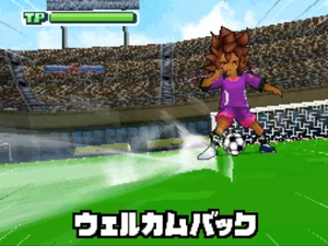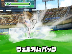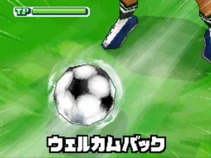 The user comes to a sudden halt before their opponent, reeling back their right leg and getting into position. They then swing their right leg forward, whipping up a stream of wind and quickly covering the ball in a fleeting veil of wind. Once the ball is fully covered in a veil of wind, it raises itself in the air as they extend their left arm, quickly beckoning their left hand and drawing it to them, akin to a string, trapping it in their right foot and successfully stealing it from their opponent.